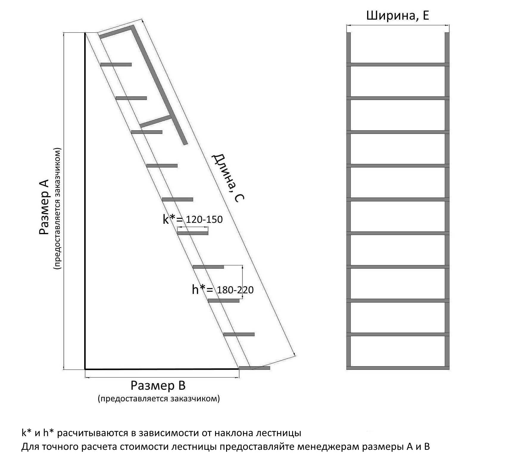 Обратите внимание, что у нас вы можете не только купить размер из стандартного каталога, но также изготовить по вашему техническому заданию. Оформление заказа у нас гарантирует расчёт изделия конструкторами по СНиП. Тщательно просчитаем необходимый уклон лестницы в подвал, безопасный шаг, глубину и наклон ступеней.