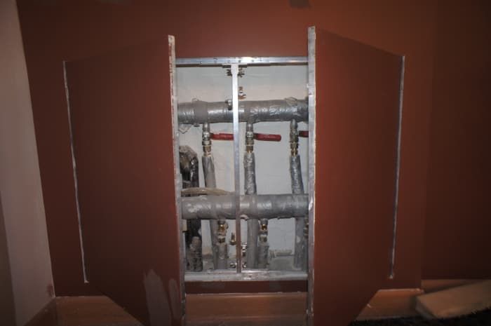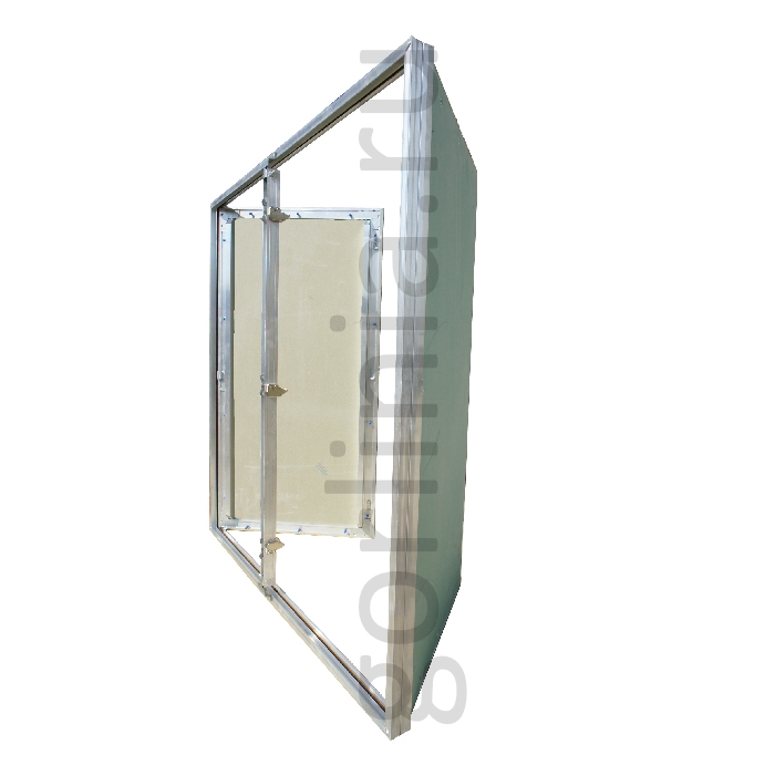 Конструкция крепится в каркас перегородки или фальшпотолка (см. монтажную схему), выставляется в уровень финишного слоя, далее декорируется материалом общей отделки поверхности. Маяками служит профиль полотна, заполненного гипсоволокном.