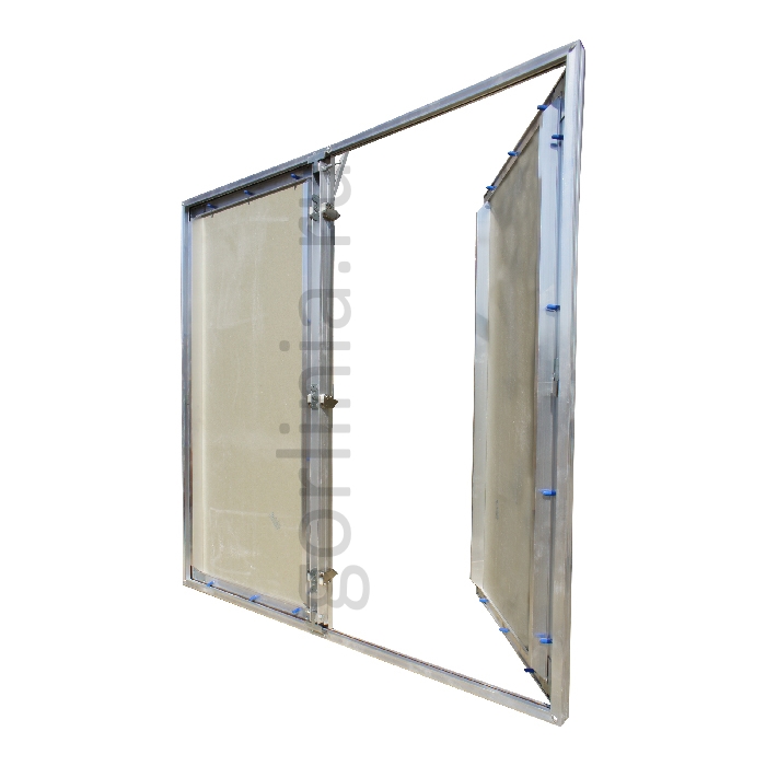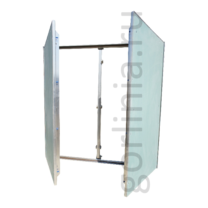 Нажимные дверцы распахиваются на несъемных петлях с одной осью вращения, дополнительно фиксируется в коробке через съемную перемычку по центру