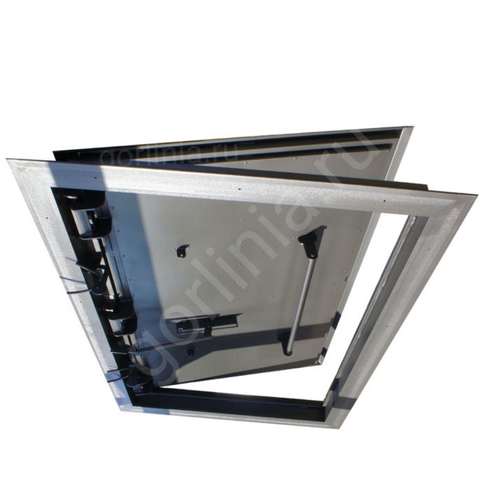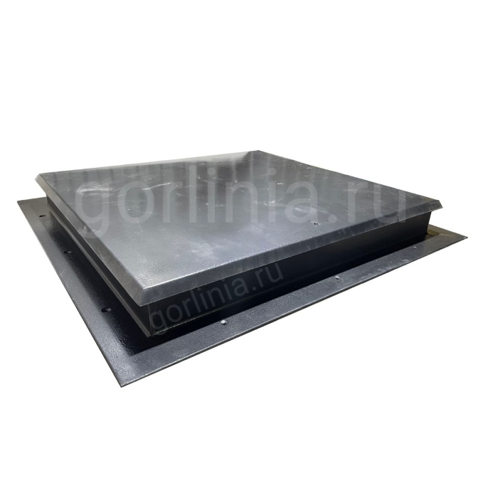 Откидная крышка закрыта сверху гладким стальным листом с загнутыми краями с вылетом 30 мм за периметр короба. Внутрь каркаса полотна между ребрами обвязки проложен рулонный минеральный утеплитель 50 мм, прикрытый снизу листом 1 мм.