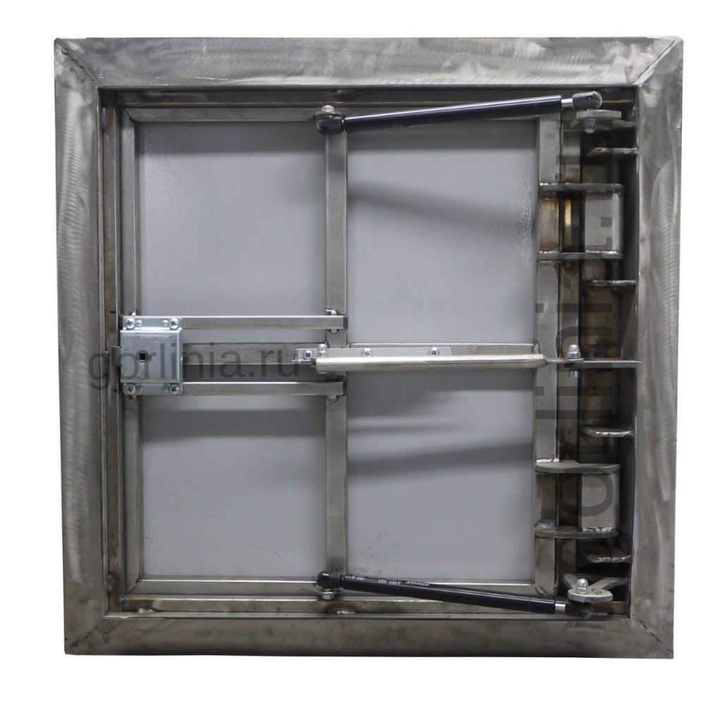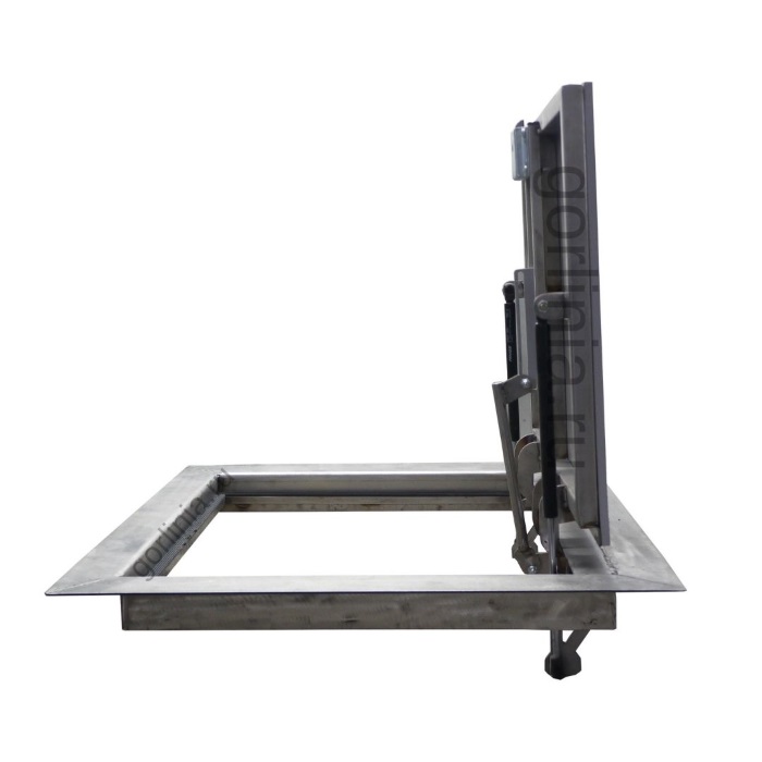 Вы ходите по закрытой крышке, как по обычному полу, обвязка полотна держит нагрузку до 200 кг на квадратный метр. Каркас опирается на трубу 15х15 по трем сторонам, на петли по четвертой.