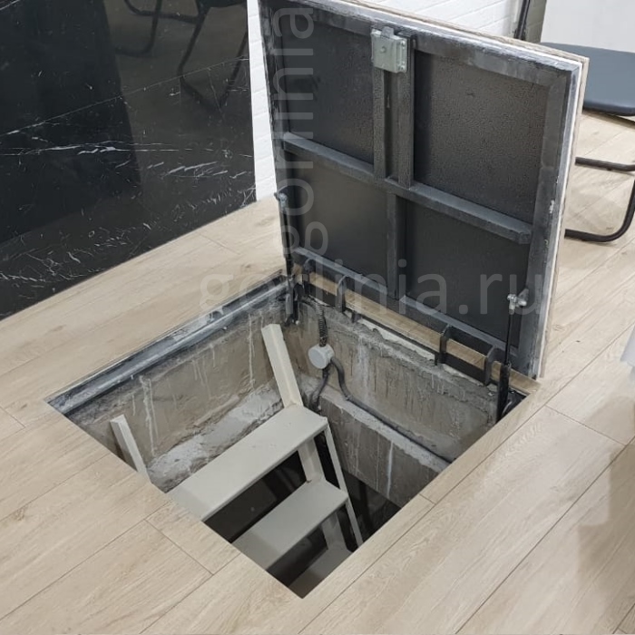 Рама без наличников выставляется в существующем отверстии 90*90 см с допусками, крепится в перекрытии через вертикальные пластины даже когда Ваш ремонт закончен и пол выложен керамогранитом или настелена ламинированная доска.