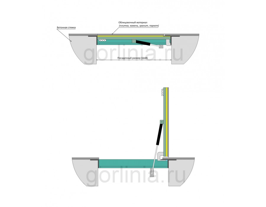 - для подъема используется съемная вставная ручка, в остальное время поверхность остается полностью замаскированной.