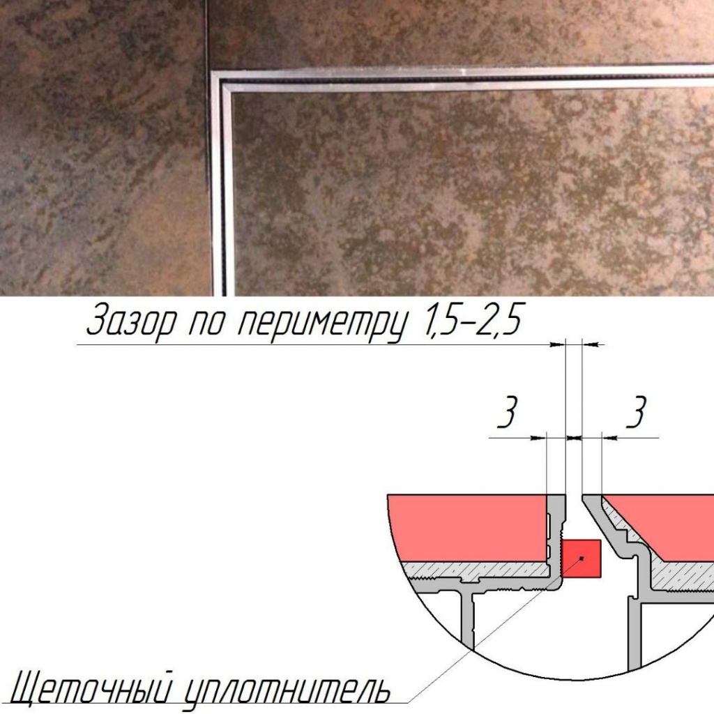- без внешнего обрамления с попаданием дверных зазоров в швы плитки по раскладке на стене.