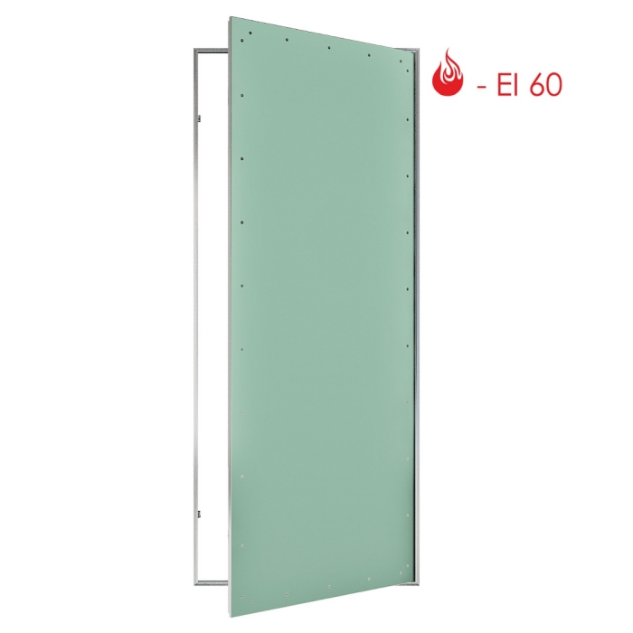 Заполнение лицевой части полотна влагостойким гипсокартоном под одностороннее шпатлевание, финишное колерование, наклейку обоев. Слой базальтовой ваты подшивается огнестойким гипсокартонным листом ГСП-DF. По контуру притвора проложен термоактивный ленточный уплотнитель.