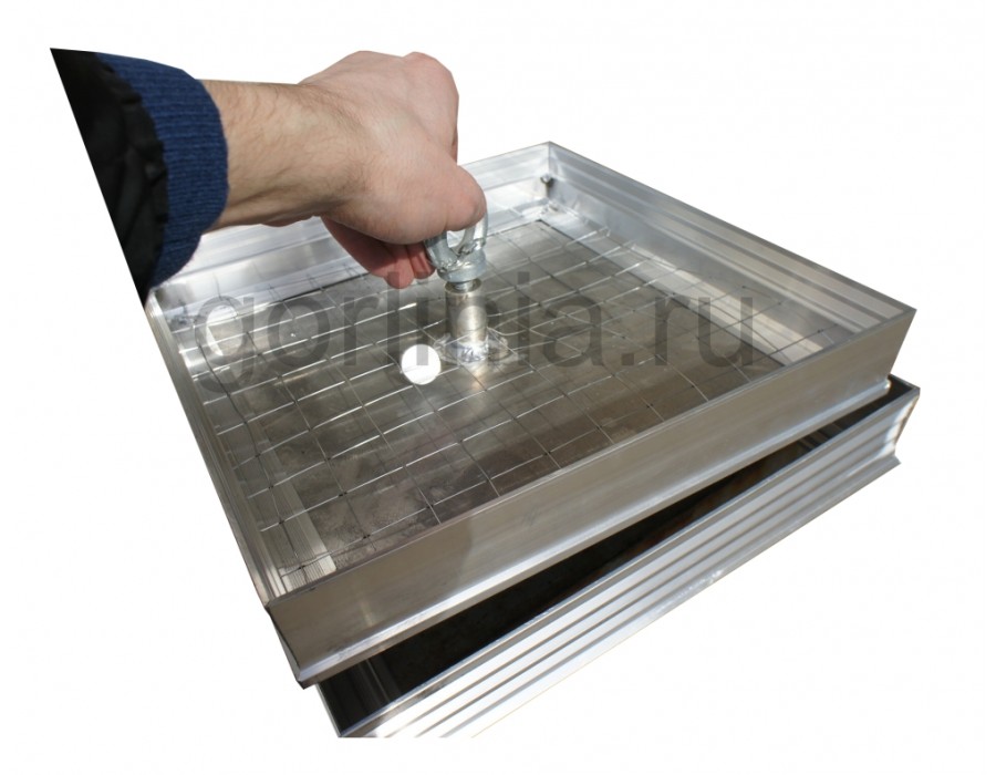 Обращаем Ваше внимание, что залитая бетонной смесью вынимаемая крышка люка 60х60 см. будет весить около 30 кг. с наклеенной плиткой. Для уменьшения массы съемной крышки используйте пенобетон или ячеистый материал в качестве стяжки.