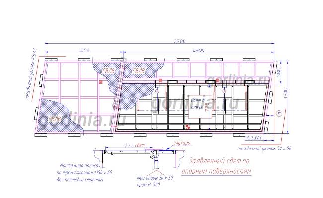 "Сложно было попасть в скошенный угол, поэтому повторно выехали на место для промера сторон и диагоналей по готовому чертежу. При планировании размера и траектории хода створки учитывали конфигурацию марша на второй этаж - ступени также смещены на 8°. Сопряженные секции скрепили намертво четырьмя винтами. Сначала поставили дальнюю глухую часть. Основная рама легла на 2 язычка вспомогательной с 3-мя опорными стойками из профиля 50х50 по петлевой балке".